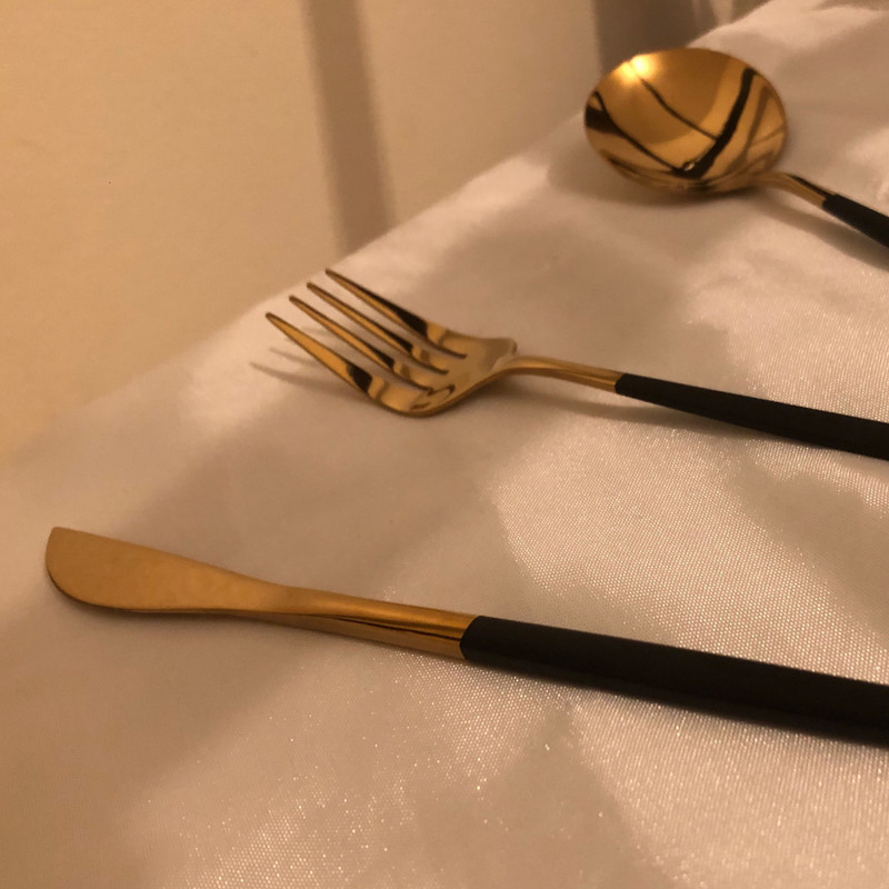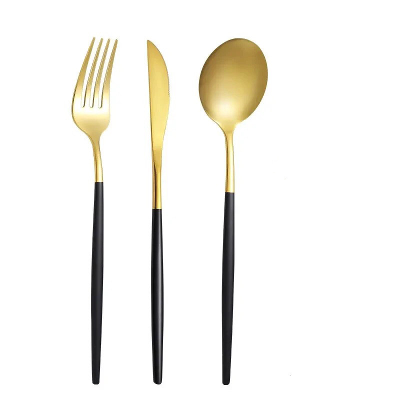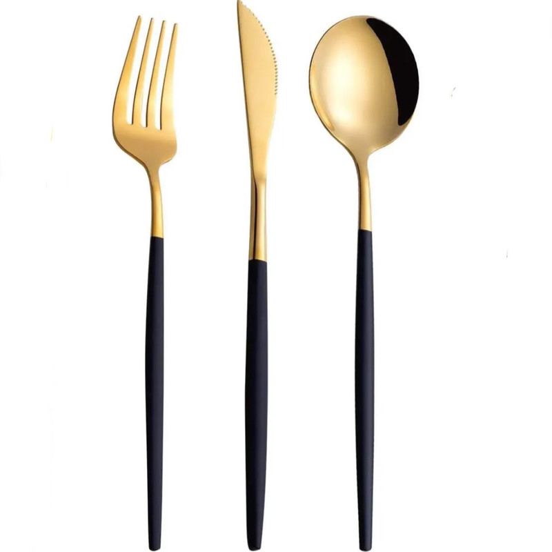 به سفارش ايتاليا استيل خارجي بدنه مات گلد با دسته مشكي مات ديزاين محصول 2024 ديزاين جديد و بروز قاشق پهن و انتهاي تمام قاشق و چنگال و چاقو اين مدل حالت كروي دارد بسيار پر طرفدار در كشورهاي اروپايي ميباشد