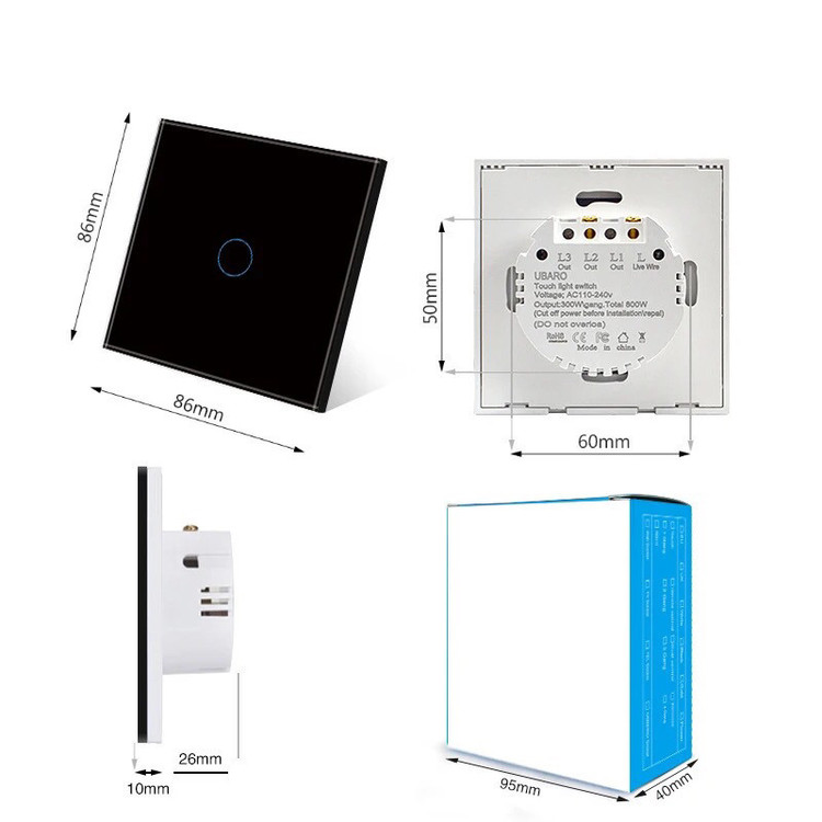 کلید لمسی ۳ پل صفحه شیشه ایی قابل شست شو کاربری راحت نصب سریع بدون نیاز به سیم کشی مجدد