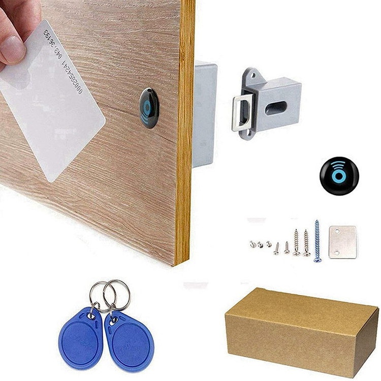این قفل کابینت مخفی RFID است، در کشو قفل می شود، وقتی باز می شود صدا دارد. می تواند از طریق IC Card یا Tage باز شود. هشدار کم مصرف و باز کردن قفل خودکار. با 2 x AA باتری 1.5 ولتی کار می کند.وقتی باتری تمام شد، می تواند به طور خودکار باز شود. وقتی قدرت باتری کمتر باشد، با صدا اطلاع می دهد و قفل خودکار باز می شود مناسب برای درب کابینت چوبی، می تواند از طریق RFID یا تگ باز شود. فرکانس آن 125 کیلوهرتز است نصب آسان دارد. این باتری برای کابینت چوبی است. با نصب قفل در داخل کابینت. هیچ کس نمی تواند آن را ببیند. باز کردن قفل چند منظوره می باشد هم با کارت و هم با تگ ها باز و بسته می شود. دو حالت باز کردن قفل را دارد.از کارت برای باز کردن قفل استفاده کنید (این برای استفاده در خانه عالی است)؛ کارت کاربر + کارت مدیریت برای باز کردن قفل (این برای استفاده در مشاغل، مانند هتل، ماساژ و غیره عالی است). 2. این مجموعه کیت قفل کابینت الکترونیکی برای کابینت، کشو، قفسه، جعبه ذخیره سازی و غیره برای خانه یا تجارت استفاده می شود: سوپرمارکت، باشگاه سونا، ورزشگاه، استادیوم های شنا، کتابخانه، کارخانه و دفتر. 3. از کارت شناسایی برای فشار دادن خارج از کابینت استفاده کنید، قفل آن در را تکان می دهد و باز می کند (توجه: برچسب فقط برای حداکثر ضخامت درب 2.5 سانتی متر قابل استفاده است، کارت شناسایی را می توان برای حداکثر ضخامت درب 4.5 سانتی متر استفاده کرد) .